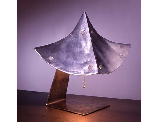 Gestaltet aus zwei Pflugscharen. Hommage an Pierre Chareau. Leuchtmittel: Glühbirne bis max. 100 Watt, E27 Keramikfassung. Lieferzeit ca. vier bis sechs Wochen.