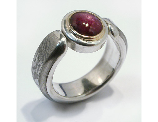 Sternsaphir, Damaszenerstahl, Fassung: Gold und Silber