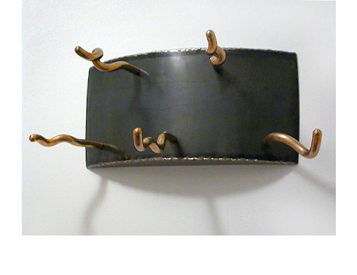 Gaderobe mit massiven Messingwürmern. Würmer oder Strahlen - in jedem Fall fast zu schade zum Verhängen. Doch sie bewahrt Würde und ist in jeder Lebenslage eine Augenweide.